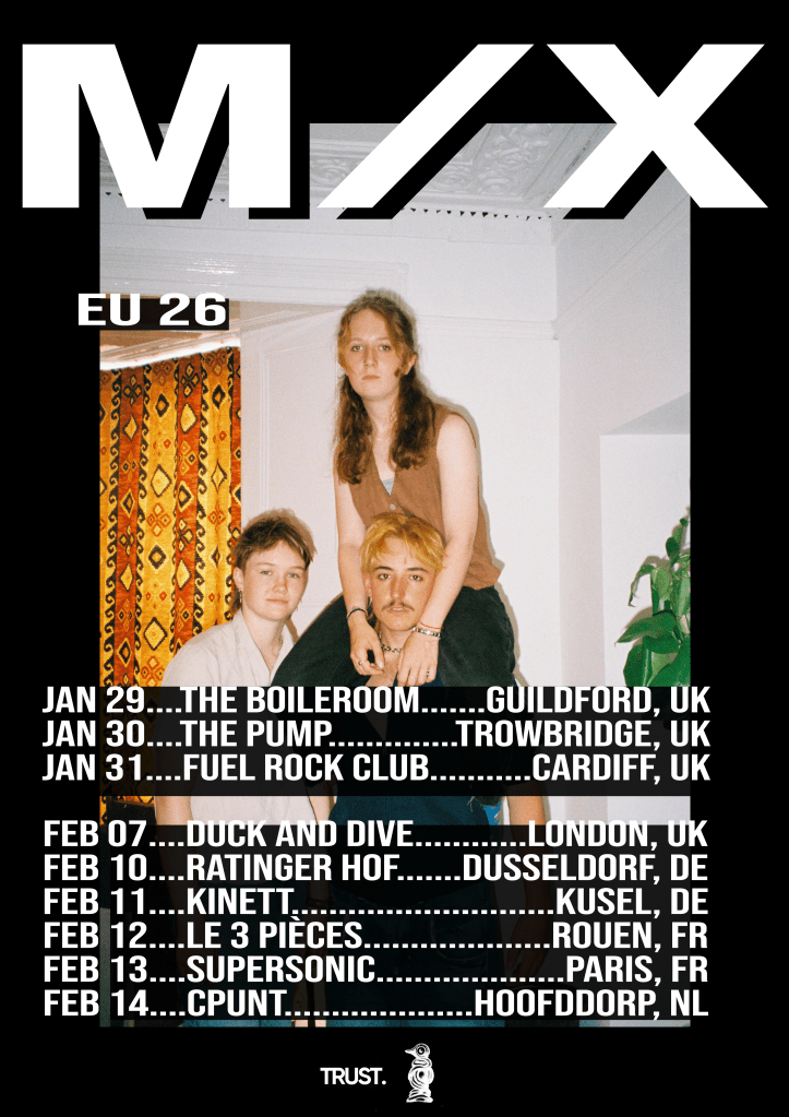Previously, their explosive performances have landed them spots at festivals like 2000 Trees, Dot To Dot, Attitude and Outertown. This year, M/X started off strong with their European live debut in February, gearing up for a huge 2026.